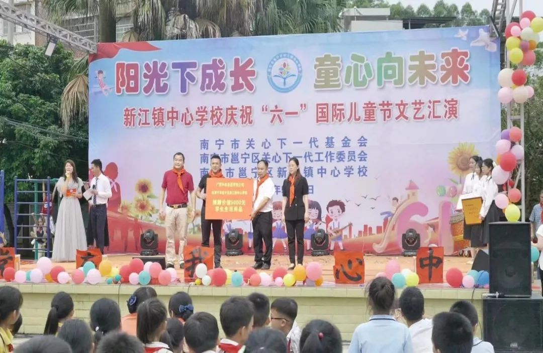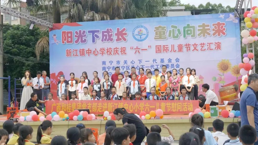 2024年5月30日下午,正值六一國(guó)際兒童節(jié)即將到來(lái)之際,和桂集團(tuán)副總裁舒志華同志、和桂黨支部書(shū)記周云同志受集團(tuán)黃偉文總裁的委托,懷著對(duì)教育事業(yè)深深的熱愛(ài)和對(duì)貧困學(xué)生的關(guān)懷,在南寧市關(guān)工委主任梁中驊同志、邕寧區(qū)新江鎮(zhèn)黨委宣傳和組織部門的領(lǐng)導(dǎo)同志以及廣西南寧五象新區(qū)(南寧自貿(mào)片區(qū)經(jīng)開(kāi)區(qū))管委會(huì)領(lǐng)導(dǎo)(校友) 廖術(shù)烈同志的帶領(lǐng)下,一起來(lái)到了邕寧區(qū)新江鎮(zhèn)中心學(xué)校進(jìn)行了六一兒童節(jié)慰問(wèn)活動(dòng),給師生們送去了節(jié)日的禮物和關(guān)愛(ài)。
