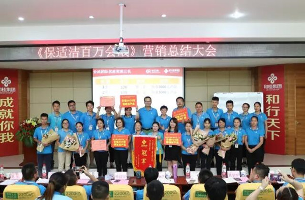 在8月14日的總結(jié)、頒獎(jiǎng)會(huì)上,和桂集團(tuán)總裁黃偉文對(duì)本次保適潔百萬(wàn)會(huì)戰(zhàn)予以高度評(píng)價(jià),并為獲獎(jiǎng)團(tuán)隊(duì)、個(gè)人進(jìn)行頒獎(jiǎng)。第二組輝煌隊(duì),助教汪翠珍,組長(zhǎng)蔣麗蓉,組員楊毅獲得個(gè)人內(nèi)購(gòu)單產(chǎn)排名第一,團(tuán)隊(duì)以舍我其誰(shuí)的氣勢(shì),力壓群雄,勇奪會(huì)戰(zhàn)團(tuán)隊(duì)冠軍。
