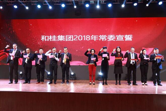 黃總在會上進行2018年人事任命通報,下達目標責任狀,和桂集團常委班子帶領業(yè)務團隊上臺宣誓。現(xiàn)場氛圍瞬間被點燃,在場的和桂家人們斗志昂揚,軍令如山,使命必達,戰(zhàn)之必勝!