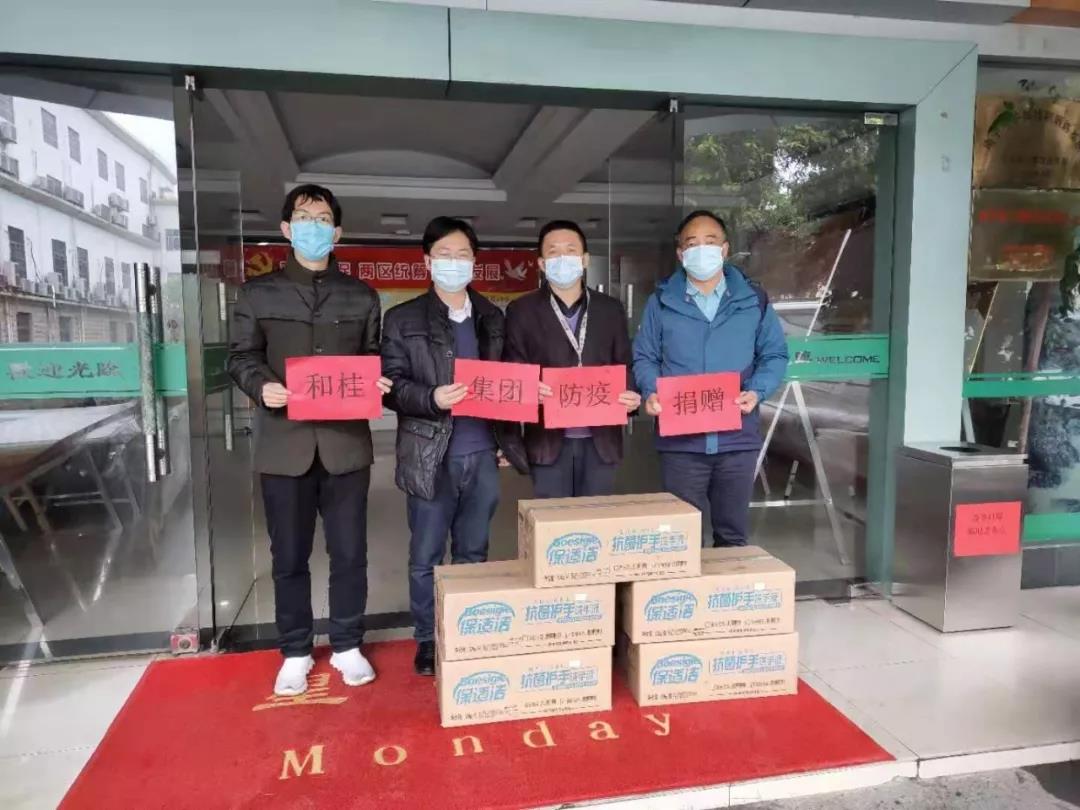 新冠病毒疫情牽動著全國人民的心,社會各界紛紛進行愛心捐贈馳援。和桂集團責(zé)無旁貸,結(jié)合企業(yè)自身實際,大力馳援疫情防控工作,向抗疫一線捐贈了生產(chǎn)的抑菌護手洗手液、免洗手消毒凝膠、除菌洗衣液等物資,彰顯企業(yè)責(zé)任與大愛。