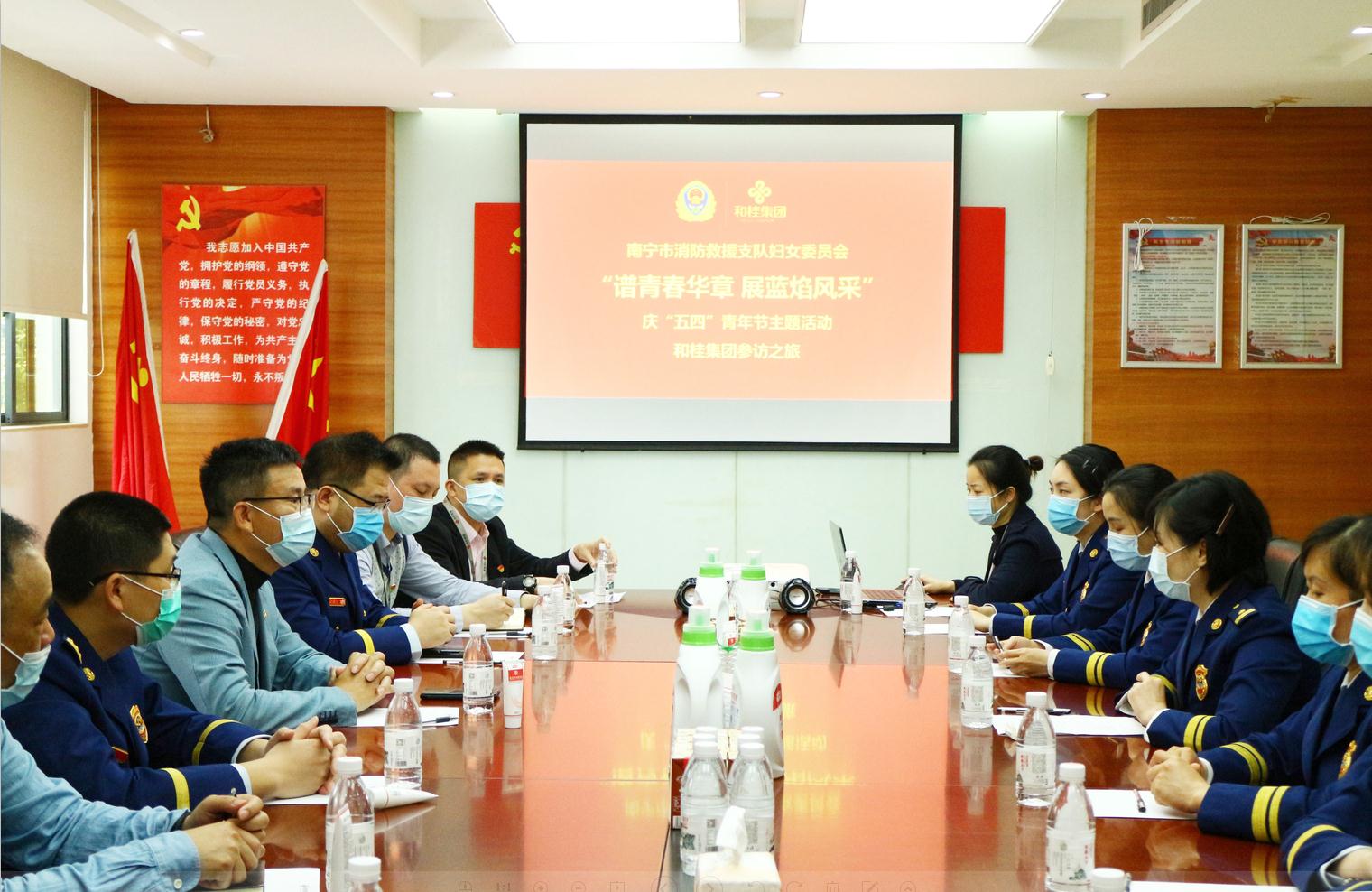 4月26日,南寧市消防救援支隊(duì)婦女委員會(huì)主任、戰(zhàn)勤保障處處長(zhǎng)莫曉漪一行參訪和桂集團(tuán),舉行“譜青春華章·展藍(lán)焰風(fēng)采”·慶“五四”青年節(jié)主題活動(dòng)。和桂集團(tuán)總裁黃偉文,攜集團(tuán)高管進(jìn)行了接待。南寧市消防救援支隊(duì)婦女委員會(huì)副主任、青秀區(qū)消防救援大隊(duì)政治教導(dǎo)員劉曉玫,經(jīng)開區(qū)消防救援大隊(duì)詹寧大隊(duì)長(zhǎng)、經(jīng)開區(qū)消防救援大隊(duì)政治教導(dǎo)員張濱成陪同參訪。
