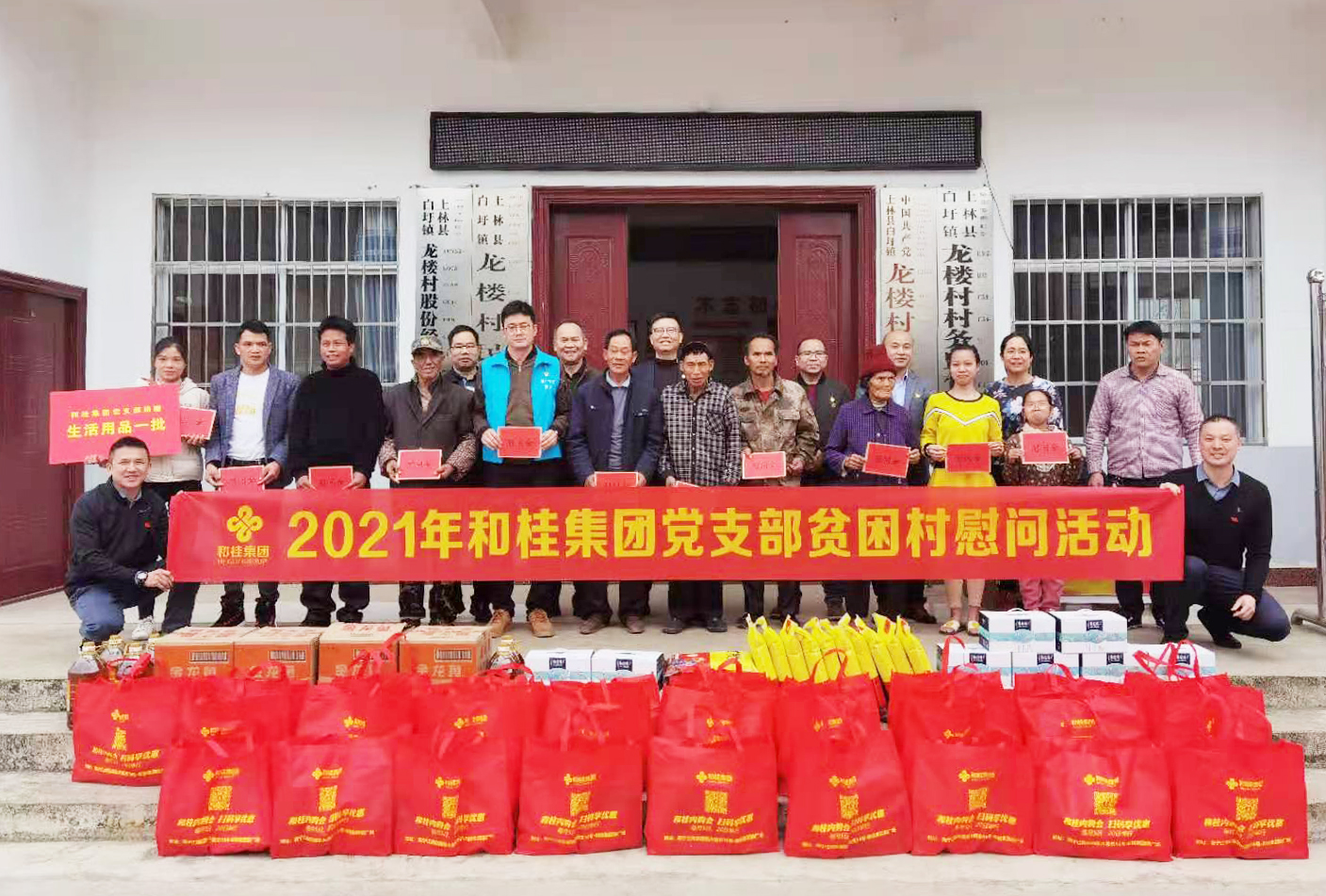 2月2日,在新春佳節(jié)到來之際,和桂集團(tuán)黨支部會(huì)同南寧市勞動(dòng)保障監(jiān)察支隊(duì),到上林縣龍樓村開展春節(jié)扶貧慰問活動(dòng),為精準(zhǔn)扶貧點(diǎn)的困難家庭和貧困大學(xué)生送上價(jià)值35000多元的慰問品和助學(xué)金,帶去和桂家人的關(guān)懷關(guān)愛和新春祝福。