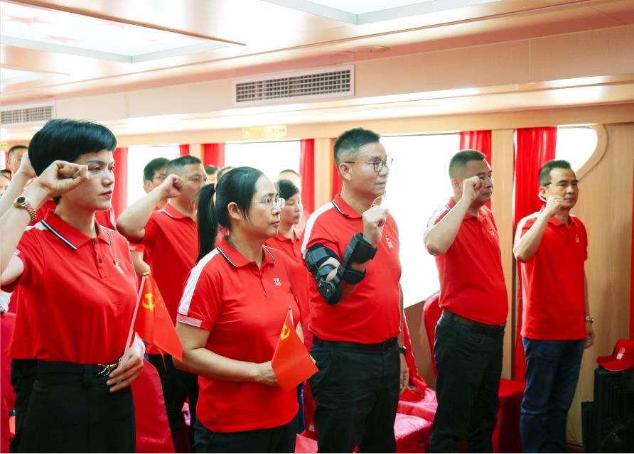 和桂集團(tuán)23年來(lái)取得的成績(jī),離不開黨的正確領(lǐng)導(dǎo),離不開各級(jí)黨委政府的大力支持,離不開廣大黨員以及和桂家人的齊心努力。和桂集團(tuán)黨支部成立于2009年,連續(xù)多年被評(píng)為“四星黨支部”和“兩新黨組織”,76%的集團(tuán)中高管是共產(chǎn)黨員,在公司發(fā)展中發(fā)揮著模范帶頭作用。不記初心,牢記使命,登船后進(jìn)行的第一項(xiàng)議程“重溫入黨誓詞”,和桂集團(tuán)全體黨員面向鮮紅的黨旗,高舉右拳,字字鏗鏘,重溫入黨宣誓的莊嚴(yán)承諾和堅(jiān)定決心,接受心靈的凈化和洗禮,牢記共產(chǎn)黨員的政治責(zé)任和歷史使命,不斷保持共產(chǎn)黨員的先進(jìn)性,聽黨話、跟黨走,以更加飽滿的熱情投身工作,啟航新征程。