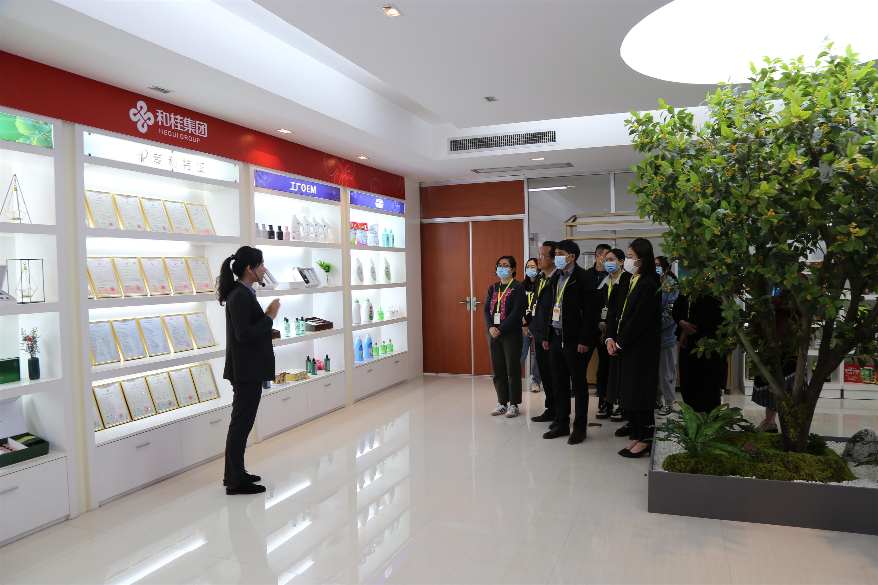 體驗(yàn)體察團(tuán)分別深入和桂集團(tuán)展廳、生產(chǎn)車間、商學(xué)院進(jìn)行參觀,了解和桂集團(tuán)企業(yè)發(fā)展情況、化妝產(chǎn)品生產(chǎn)過程、人才培訓(xùn)輸出體系等,給大家留下了深刻的印象。和桂集團(tuán)成立至今已有25年歷史,擁有和桂生產(chǎn)、供應(yīng)鏈服務(wù)、大健康三大產(chǎn)業(yè)板塊,大家日常使用的很多日用品,都是和桂集團(tuán)代理和生產(chǎn),公司經(jīng)營的“源生堂”養(yǎng)發(fā),門店更是隨處可見,和桂一直就在身邊。